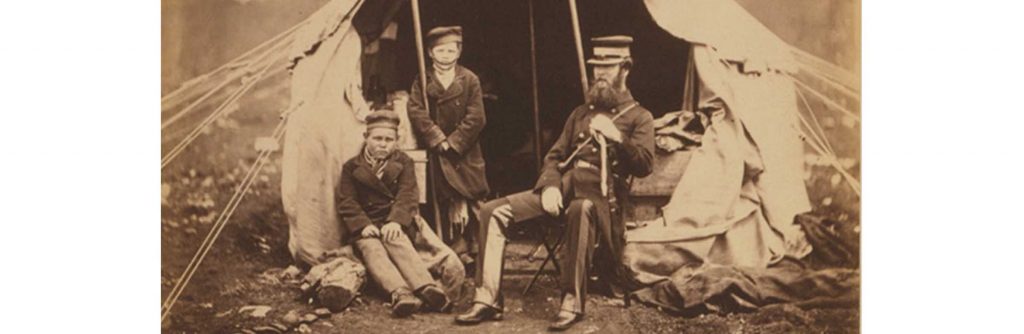 Megan came upon a blog post by Philip Boys regarding an intriguing side-story to the Crimean War. The image is a photograph by Roger Fenton taken during the siege of Sevastopol in 1855 of two Russian boys with Colonel Brownrigg. The boys were nicknamed ‘Alma’ and ‘Inkermann’.